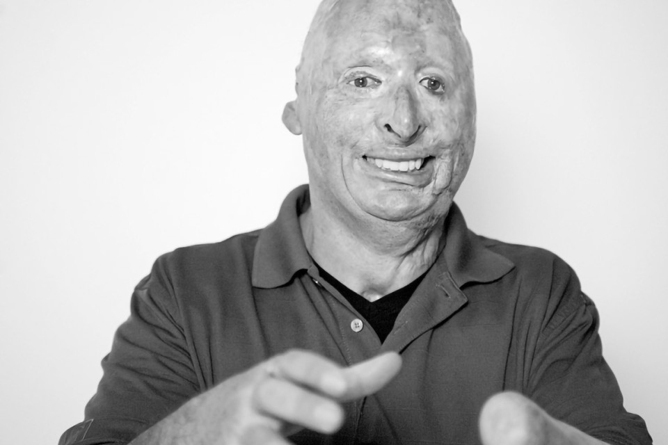 Bobby Henline, the sole survivor when his Humvee was hit by a roadside bomb, suffered burns over 38% of his body and has undergone 45 surgeries. He begins his comedy routine by slowly assessing the audience before announcing, "You should see the other guy."