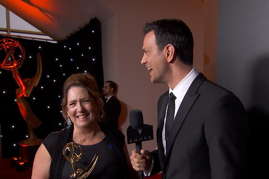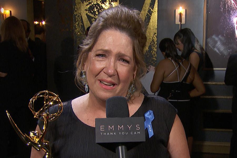 Ann Dowd talks with the Emmys Thank You Cam after winning for Outstanding Supporting Actress in a Drama Series.