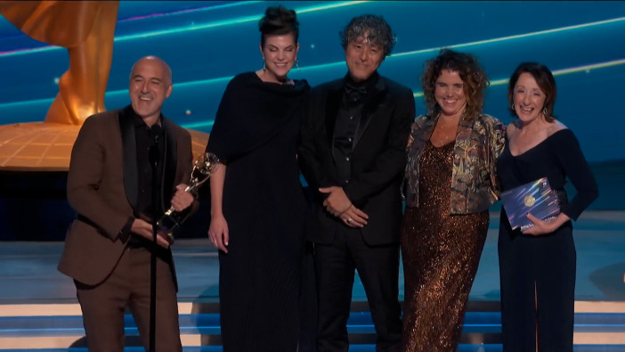 The Team from Shōgun - Ladies Of The Willow World accepts the Emmy for Outstanding Period Costumes For A Series at the 2024 Creative Arts Emmy Awards.