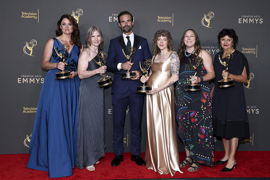 The Team from Girls State accepts the Emmy for Outstanding Cinematography For A Nonfiction Program at the 2024 Creative Arts Emmy Awards.