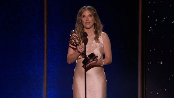 Faustine Dumontier from Arcane accepts the juried Emmy award for Individual Achievement In Animation - Color at the 2025 Creative Arts Emmy Awards.