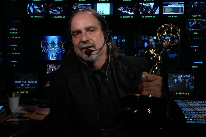 Glenn Weiss talks with the Emmys Thank You Cam after winning for Outstanding Directing For A Variety Special.