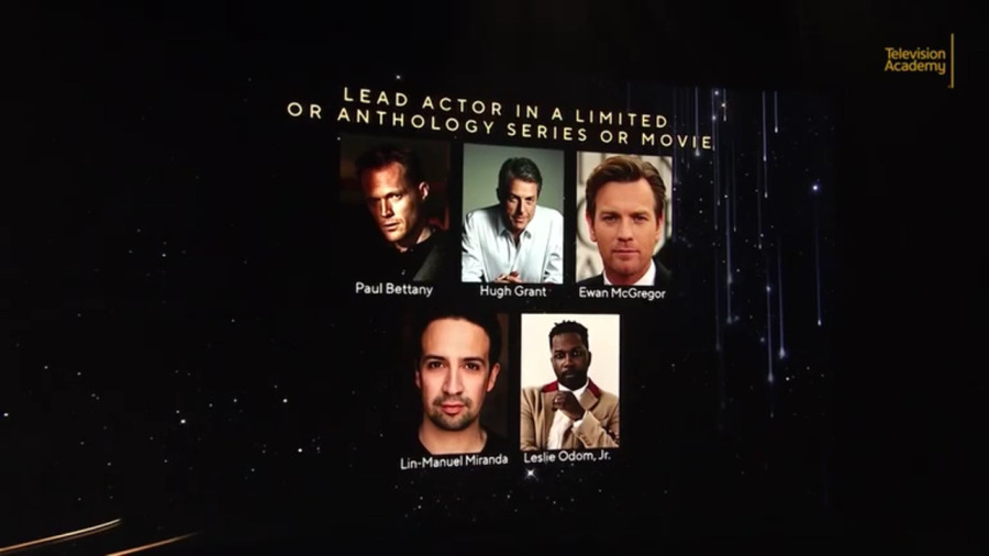 The nominees for Outstanding Lead Actor in a Limited or Anthology Series or Movie are Lin-Manuel Miranda, Leslie Odom Jr., Ewan McGregor, Paul Bettany, and Hugh Grant.