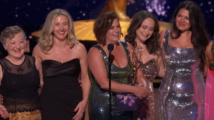 The team from SNL50: The Anniversary Special accepts the Emmy for Hairstyling For A Variety, Nonfiction Or Reality Program at the 2025 Creative Arts Emmy Awards.