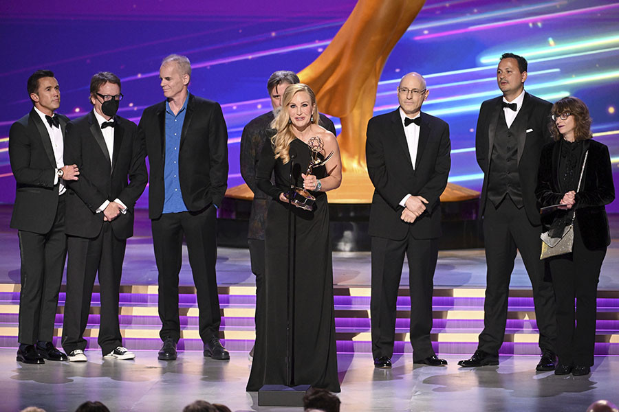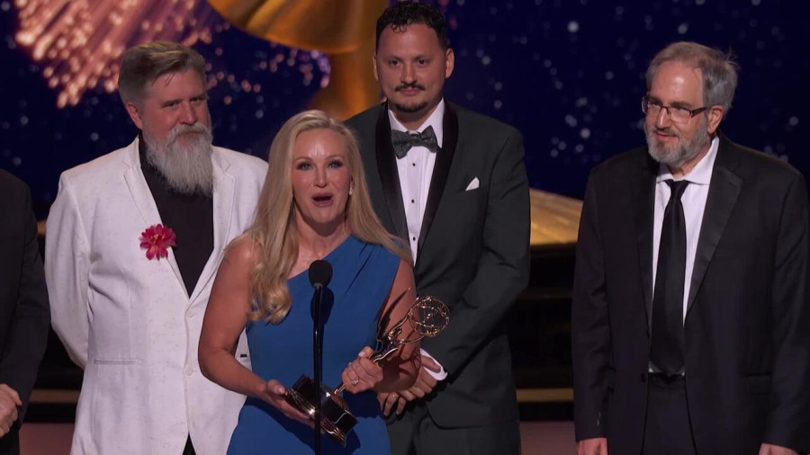 The team from Jeopardy! accepts the Emmy for Outstanding Game Show at the 2025 Creative Arts Emmy Awards.