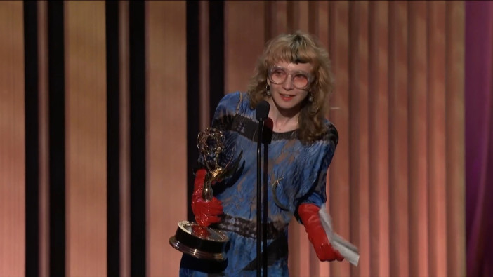 Maya Edelman accepts the Emmy for Individual Achievement in Animation for More Than I Want To Remember at the 75th Creative Arts Emmy Awards.