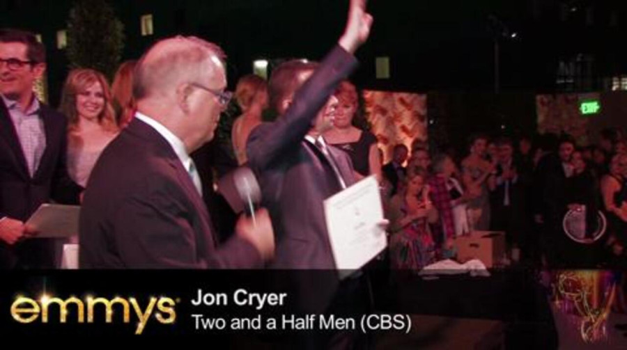 Jon Cryerr of Two and a Half Men backstage at the 64th Primetime Emmys
