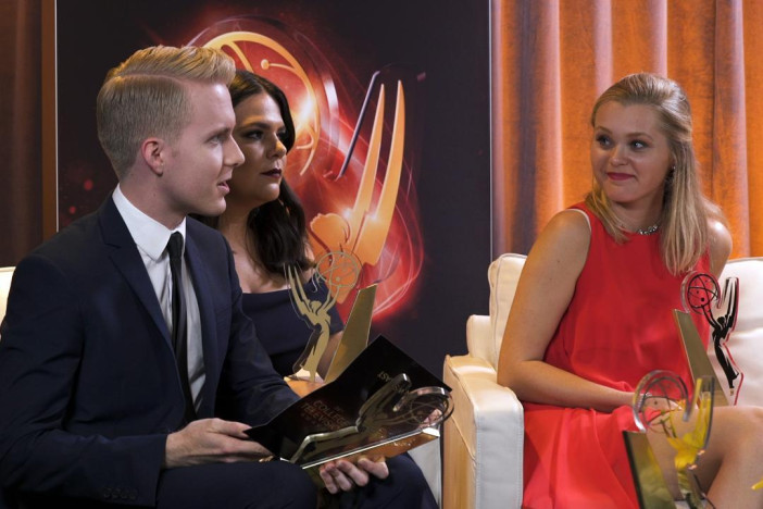 The College Television Award winner for Newscaster, Erika Orstad of University of Miami, and Newscast winners, Ryan Roberts and Daniela Hurtado of University of Florida, have a chat with ET's Kevin Frazier about their win and their work in the news.