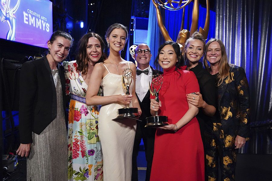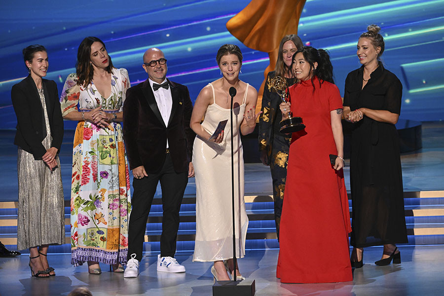 The team from Quiz Lady accepts the Emmy for Outstanding Television Movie at the 2024 Creative Arts Emmy Awards.