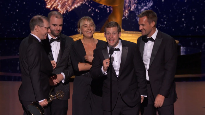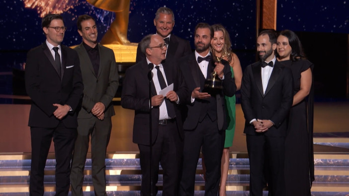 The team from White Rabbit accepts the juried Emmy award for Outstanding Innovation In Emerging Media Programming at the 2025 Creative Arts Emmy Awards.
