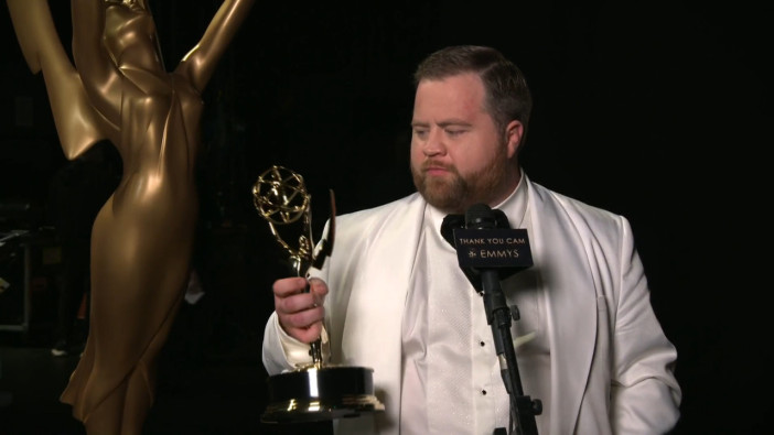 Paul Walter Hauser talks with the Emmys Thank You Cam after winning for Outstanding Supporting Actor in a Limited or Anthology Series or Movie.