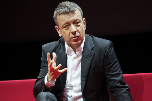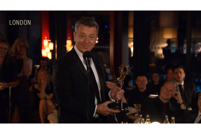 Peter Morgan wins the Emmy for Writing for a Drama Series at the 73rd Emmys.