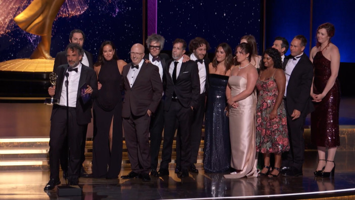 The team from Conan O'Brien: The Kennedy Center Mark Twain Prize For American Humor accepts the Emmy for Outstanding Variety Special (Pre-Recorded) at the 2025 Creative Arts Emmy Awards.