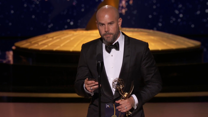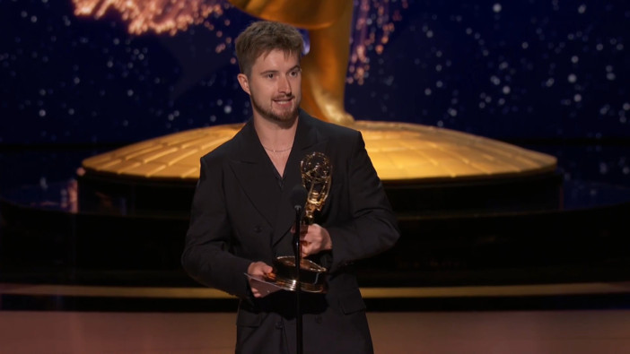 Matthew Lewis from Adolescence accepts the Emmy for Cinematography For A Limited Or Anthology Series Or Movie at the 2025 Creative Arts Emmy Awards.