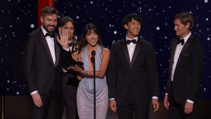 The team from White Rabbit accepts the juried Emmy award for Outstanding Innovation In Emerging Media Programming at the 2025 Creative Arts Emmy Awards.