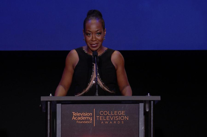 Temple University's Tichina Arnold awards Eli Laban as the 1st place winner in Series - Unscripted.