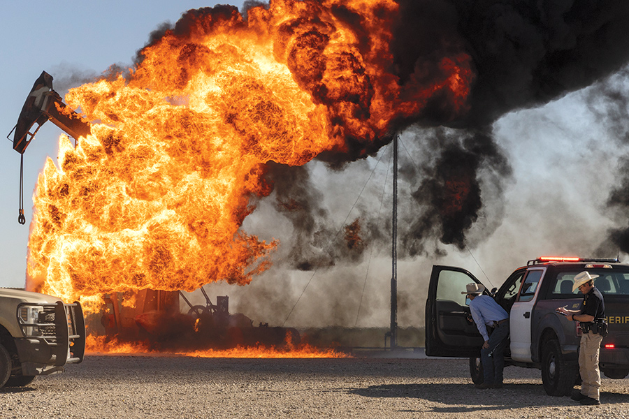 Multiple cameras and careful timing combine to give Landman its authentic West Texas look — a strategy McLachlan uses to capture the heat and aridness of an unforgiving landscape.