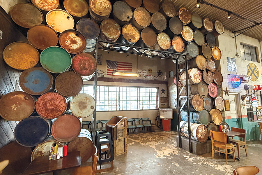 Curry, who lives on a ranch in the Texas Hill Country with her husband, describes herself as a stickler for authenticity. "That just comes from living that life," she says. To ensure the hats hanging in the M-Tex House looked right, "I stole them from my husband. It's hard to fake a good, sweated-out hat."