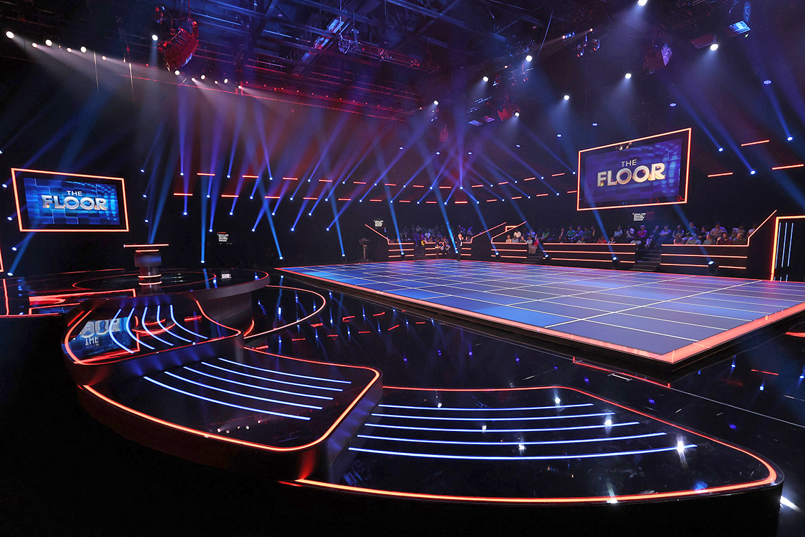 The Talpa Studios game show was created by John de Mol. While the original Dutch version of The Floor has an LED floor as its centerpiece, that show is "a lot calmer, a lot quieter and a lot simpler," says Carbone, whose approach to making the American version was to "go bigger" and "noisier" and create a set that was simple, sleek and high-tech.