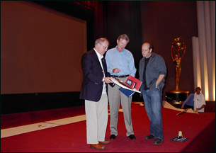 Production Designer John Shaffner—shown here with Askin and Television Academy governor Paul Kaufman—created the new look. Shaffner is also First Vice Chair of the Television Academy.