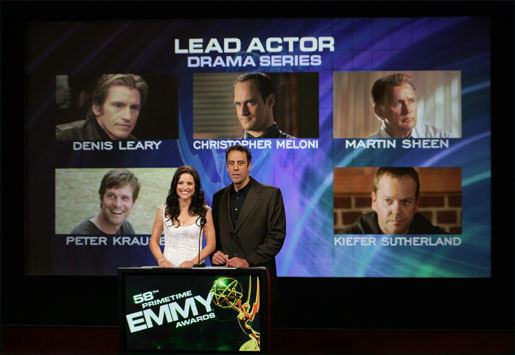 | Scores of media converge on Leonard H. Goldenson Theatre in North Hollywood, California, in the wee hours of July 6, where Julia Louis-Dreyfus and Brad Garrett will join Dick Askin in announcing the 2006 Primetime Emmy nominees. |