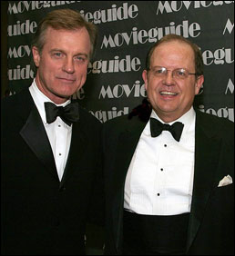 | Dr. Ted Baehr, founder and chairman of the Christian Film & Television Commission (right), greets 7th Heaven actor Stephen Collins at the 14th Annual Movieguide® Faith & Values Awards. |