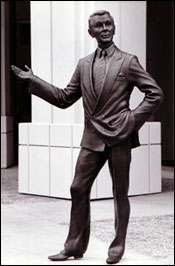 | Above: A life-size statue of Carson stands amongst fellow Hall of Fame inductees at the Academy's headquarters in North Hollywood. |