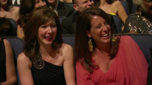 The audience was howling and gave the ladies a standing ovation when Amy, Martha Plimpton, Edie Falco, Melissa McCarthy, Laura Linney and Tina Fey — playing it for all it was worth — waited breathlessly for the envelope to be opened… and the winner… “Melissa McCarthy!”