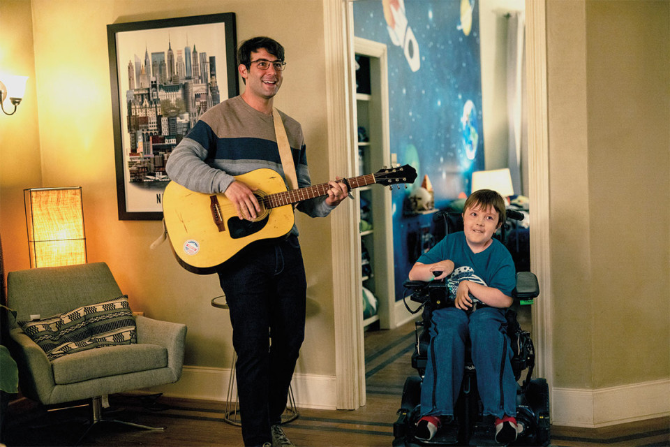He sings in roughly half of the episodes of Ordinary Joe. Gluck plans to release music to benefit the nonprofit Cure CMD (congenital muscular dystrophy); his own type is called Collagen VI. "My character has SMA [spinal muscular atrophy], another rare form of muscular dystrophy," he says. "I think it's great that these diseases are getting more representation in movies and shows."