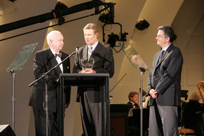 | Tom Sarnoff, Dick Askin, and Todd Leavitt – honoring Tom for his long service to the Academy and the Foundation (l-r) |