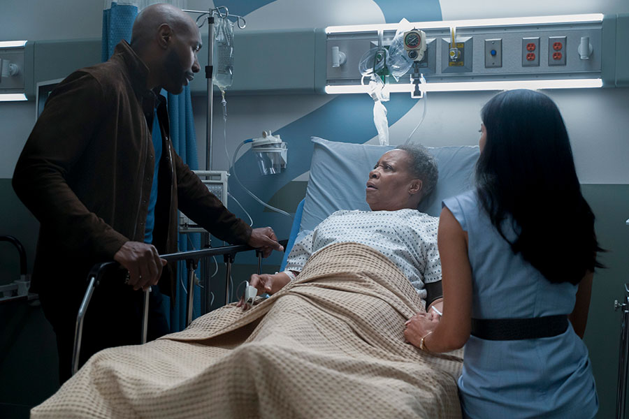 Dr. Watson and his ex-wife Dr. Mary Morstan (Rochelle Aytes) with her mother in the season 2 premiere.
