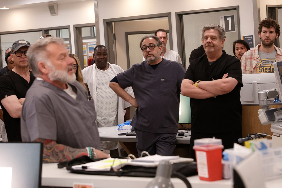 Written by Gemmill, "9:00 P.M.," the final episode of the show’s acclaimed first season, concludes an extra stressful shift in a fictional Pittsburgh emergency room, where Wyle’s Michael Robinavitch — known to all as Dr. Robbie — has either treated or overseen the treatment of a steady procession of patients before running point (and running ragged) to prep the hospital for an influx of victims injured in a mass shooting at a local music festival. Along the way, the E.R.'s dedicated charge nurse, Dana (Katherine LaNassa), is assaulted in the ambulance bay by a disgruntled, racist patient and Dr. Robbie struggles with crippling PTSD that resurfaces when, despite exhausting all treatment options, he is unable to save his former stepson’s girlfriend.