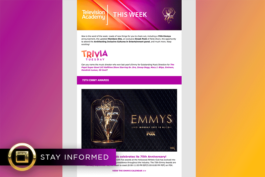 We know you are busy with your respective work and personal obligations, but we also know that organizations like ours are only as good as the involvement and engagement of their members. So, we look forward to meeting you at future events, and encourage you to participate in Emmy Awards voting, peer group activities (whether virtual or in-person) and any of the other ways you can contribute and connect with our growing community as we celebrate television excellence.