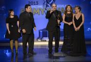 Amy Tagliamonti, Josh Turi, Louie Zakarian, Daniela Zivkovic, and Melanie Demitri, winners for Saturday Night Live , Outstanding Makeup for a Multi-Camera Series or Special (Non-Prosthetic)