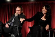 Show creator Kurt Sutter and actress Katey Sagal on stage at An Evening With Sons of Anarchy