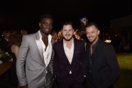 (From left) Keoikantse Motsepe, Valentin Chmerkovskiy and Artem Chigvintsev attend the Producers nominee reception.