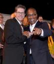 Bob Bergen (l) and Joe Morton (r) of Scandal attend the Performers nominee reception.