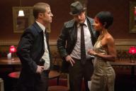 On the set of Batman prequel Gotham, stars Donal Logue as Det. Harvey Bullock (c.) with Ben McKenzie as Det. James Gordon and Jada Pinkett Smith as Fish Mooney (r.).