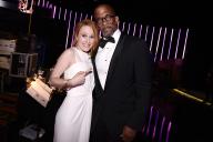 Rachel Brosnahan and Reg E. Cathey backstage at the 2015 Creative Arts Emmy Awards.