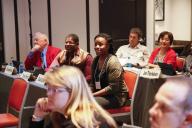 Faculty Fellow, Claudia Calhoun, asks a question during the Below the Line panel presented by the Television Academy Foundation on Tuesday, Nov. 10, 2015, in Burbank, California.