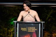Lana Parilla speaks at the 37th College Television Awards at the Skirball Cultural Center on Wednesday, May 25, 2016, in Los Angeles.