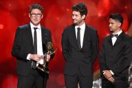 The team from The Man in the High Castle accepts their award at the 2016 Creative Arts Emmys.