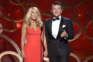 Lori Greiner and Robert Herjavec on stage at the 2016 Creative Arts Emmys.