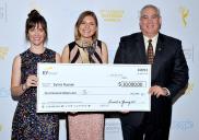 Maggie Siff, left, and Ernst & Young LLP Partner Andy Sale, right, pose for a portrait with Sylvia Rusnak of Georgetown University recipient of the Mister Rogers Memorial Scholarship award at the 37th College Television Awards on May 25, 2016. (Photo by Vince Bucci/Invision for the Television Academy/AP Images)