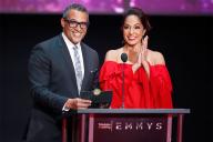Michael Brownlee and Michelle Valles at the L.A. Area Emmy Awards presented at the Television Academy's Wolf Theatre at the Saban Media Center on Saturday, July 22, 2017, in North Hollywood, California.