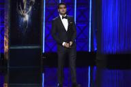 Kumail Nanjiani on stage at the 2017 Creative Arts Emmys.