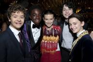 Gaten Matarazzo, from left, Caleb McLaughlin, Millie Bobby Brown, Finn Wolfhard and Noah Schnapp at the 69th Emmys Governors Ball.