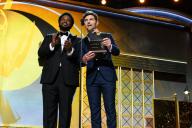 Craig Robinson and Adam Scott present an award at the 69th Primetime Emmys.