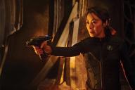 Captain Georgiou (Michelle Yeoh), of the new USS Shenzou, displays her tactical gear. “We’re all madly in love with that phaser,” co-showrunner Gretchen J. Berg enthuses. “It’s fantastic.”