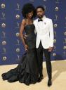 Xosha Roquemore and Lakeith Stanfield on the red carpet at the 70th Emmy Awards.